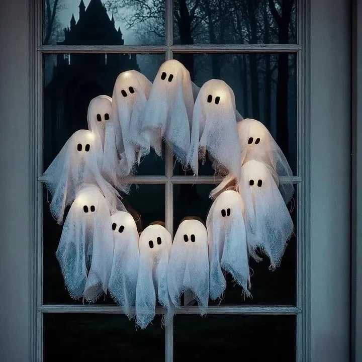 Varázsolj halloweeni hangulatot otthonodba ezzel az imádnivaló világító szellemkoszorúval! 12 világító szellemet tartalmaz, amelyek lágy, hátborzongató fényt kölcsönöznek bármely szobának. Akár a bejárati ajtódon, az ablakodban vagy egy parti központi díszeként lóg, ez a koszorú tökéletesen ötvözi a hátborzongató mókát és az ünnepi bájt! 🎃💡