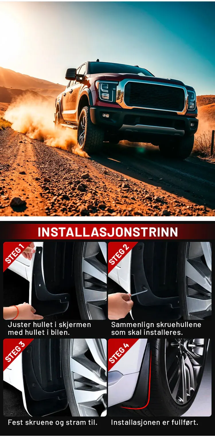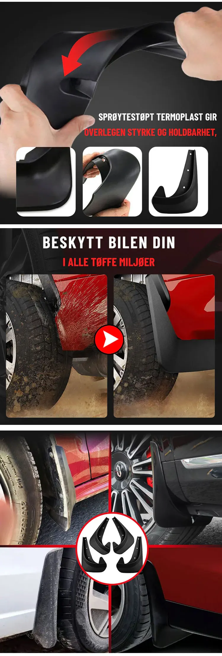 Praktikus kialakítás: A sárvédőket speciálisan kiszélesítették, hogy elég nagyok legyenek a hatékony védelemhez. A közönséges műanyaggal ellentétben ez a sárvédő nagyobb rugalmassággal rendelkezik, így nem törik el, ha gyorshajtásnak van kitéve, így garantálja a biztonságot és a tartósságot.