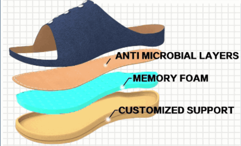 Ezeket a kényelmes, párnázott, lélegző ortopédiai papucsokat fájdalomban szenvedő embereknek, például egyetlen fascitisnek, sarokfájdalomnak, Morton neuromájának, DNS keskeny artritisznek és más lábfájdalomnak szánták. A jó megjelenés mellett a legkevesebb részletekkel vannak megtervezve a maximális kényelem és tartósság érdekében.