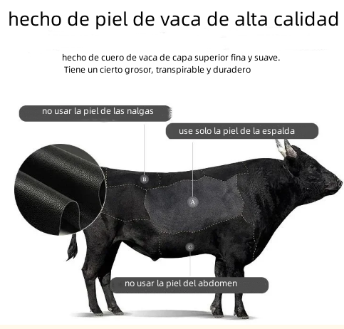 A gondosan kiválasztott, puha, kényelmes és lélegző marhabőr első rétege.